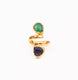 Anillo con gemas facetadas, engatadas a mano, en bronce y bañadas en oro